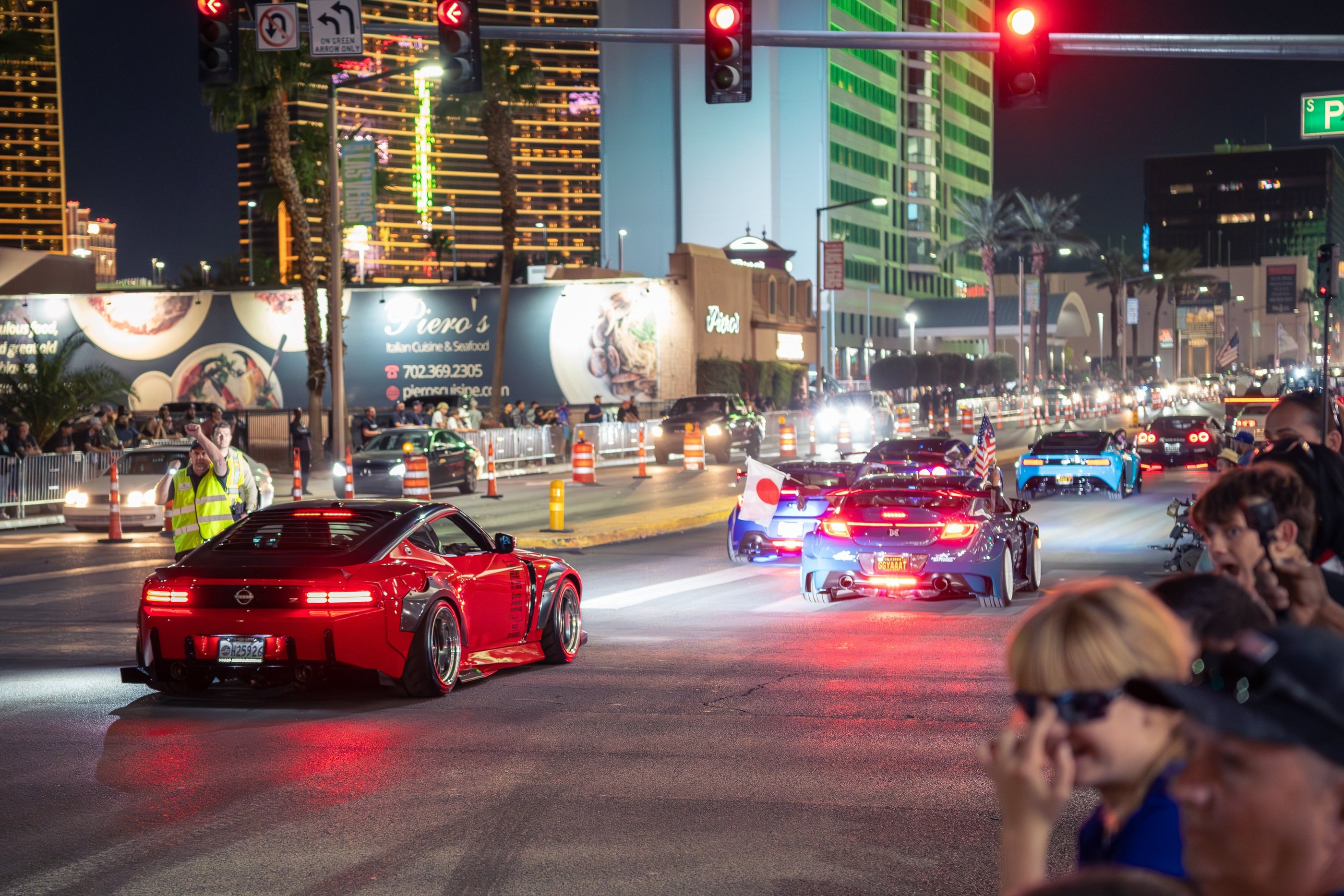 Not only were there cars on display as far as the eye could see, but the outdoor demos were just as impressive. Drift cars, burnout monsters, and freestyle motocross riders kept the crowd pumped with nonstop action. At one point, trophy trucks were literally soaring over cars as they drifted below—it was absolutely wild to witness. At the end of SEMA, the cars who could drive under their own power, left in a parade.